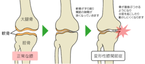 加齢によって、膝の軟骨が擦り減ってしまい痛みが、出てしまうと説明される