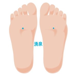 足裏の土踏まずのやや上の中央部、足の指を曲げたときに凹んだ場所にある”湧泉”