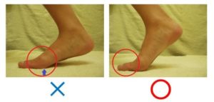 前方に移動し、体重を足趾まで乗せて歩くように気を