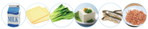 牛乳・乳製品、小魚、干しエビ、小松菜、チンゲン菜、大豆製品など