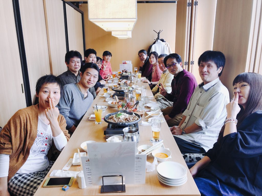 皆で、すき焼き、刺身、アンコウの唐揚げ を頬張り